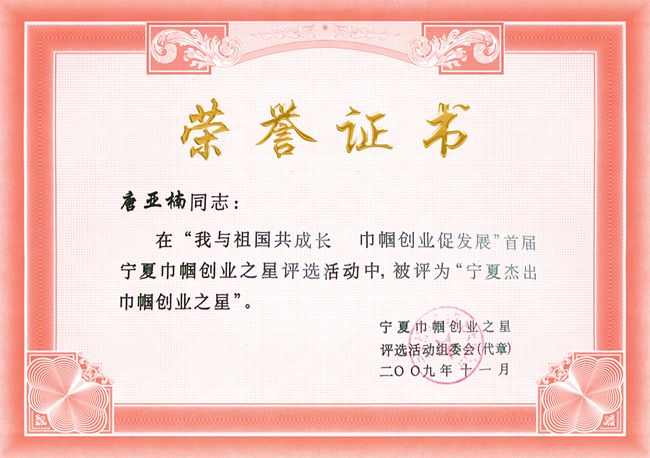 唐亞楠被評為寧夏杰出巾幗創業之星