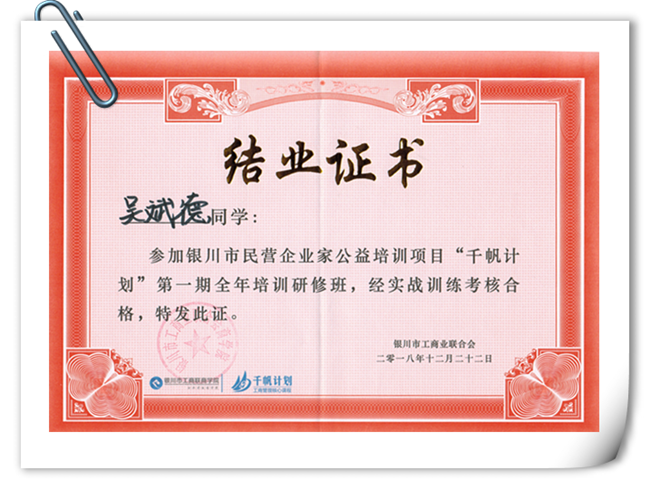 伊百盛吳斌德“千帆計劃”培訓(xùn)合格結(jié)業(yè)證書