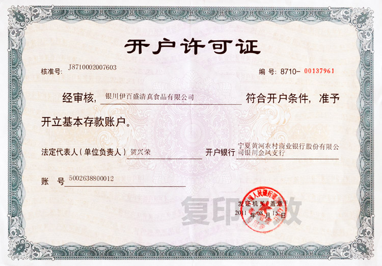 銀行開戶許可證
