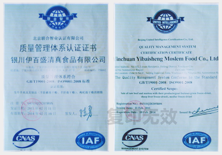 HACCP證書中文版正本