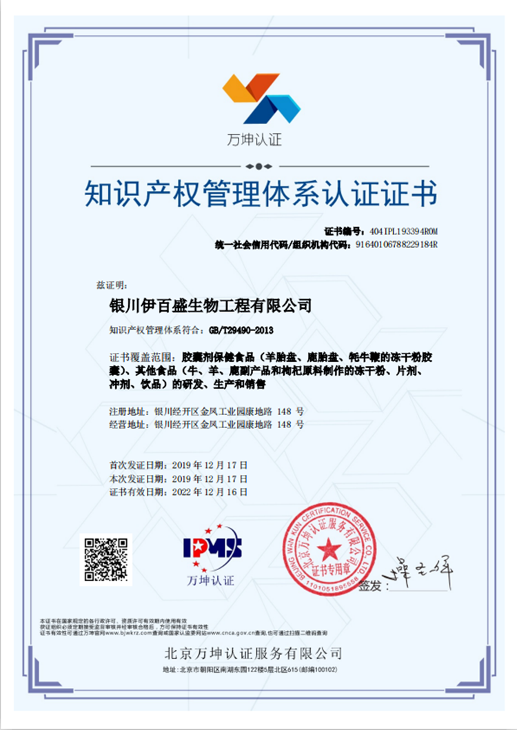 知識產權管理體系認證證書