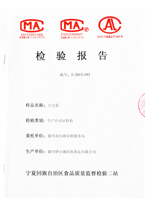 八寶茶檢驗報告書